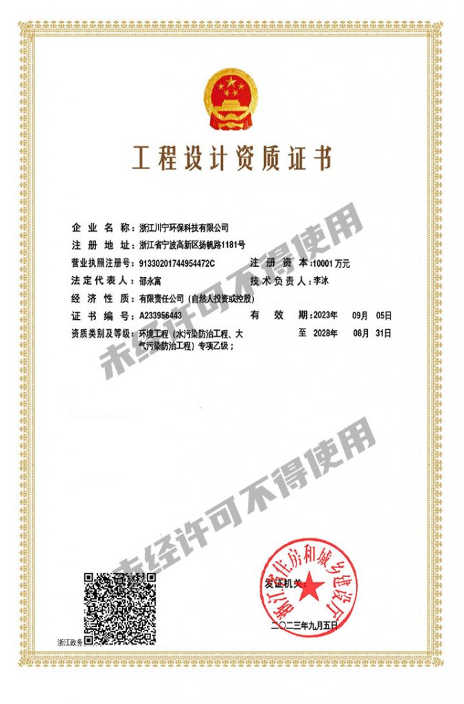 雛鷹摔了無(wú)數(shù)次,才有翱翔天空的本領(lǐng),鳳凰忍受住烈火焚燒,才有了涅槃重生。隨著時(shí)間推進(jìn),浙江川寧環(huán)??萍加邢薰救w員工不畏艱難,鍥而不舍,不斷進(jìn)取,于2023年9月5日,順利通過(guò)浙江省住建廳的資格審查,成功取得環(huán)境工程水污染防治工程專項(xiàng)乙級(jí)/大氣污染防治工程專項(xiàng)乙級(jí)設(shè)計(jì)資質(zhì)!也是寧波市首家獲此環(huán)境工程設(shè)計(jì)資質(zhì)的企業(yè)。