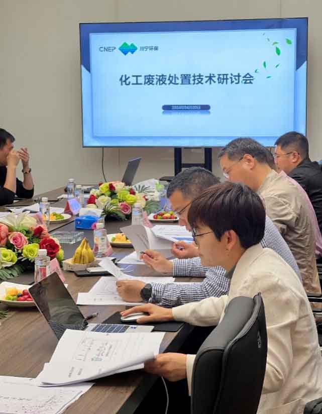 針對(duì)當(dāng)前化工廢液處置難和處置費(fèi)用高、設(shè)備運(yùn)行不穩(wěn)定等問題,川寧環(huán)保公司近年來一直致力于化工廢液的處置及資源化利用的研發(fā)(危廢代碼HW06)。經(jīng)過多年的探索,我公司日前成功研發(fā)新型安全高效的化工廢液處置成套裝置,經(jīng)實(shí)際使用,各項(xiàng)數(shù)據(jù)符合要求,設(shè)備造價(jià)與運(yùn)行費(fèi)用低于同類設(shè)備。為更進(jìn)一步完善設(shè)備的使用及安全穩(wěn)定性, 4月20日下午二點(diǎn),川寧公司邀請(qǐng)到了國(guó)內(nèi)化工、熱能工程、環(huán)保及化工安全領(lǐng)域的專家,對(duì)我公司研發(fā)的高鹽高濃度化工廢液處置技術(shù)及成套設(shè)備進(jìn)行交流與評(píng)審。會(huì)上各位專家對(duì)我公司的工藝技術(shù)包和設(shè)備結(jié)構(gòu)提出了很多中肯意見,并對(duì)我公司取得的成就表示祝賀,認(rèn)為川寧公司的化工廢液處置新技術(shù)能解決各企業(yè)的廢液處置難題,為政府解憂,為各化工企業(yè)帶來福祉,具有安全高效穩(wěn)定、投入成本低、運(yùn)行費(fèi)用低優(yōu)點(diǎn)。