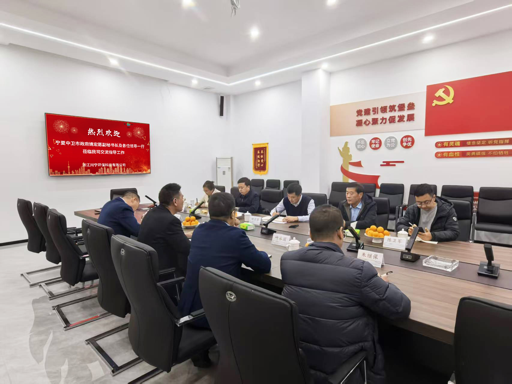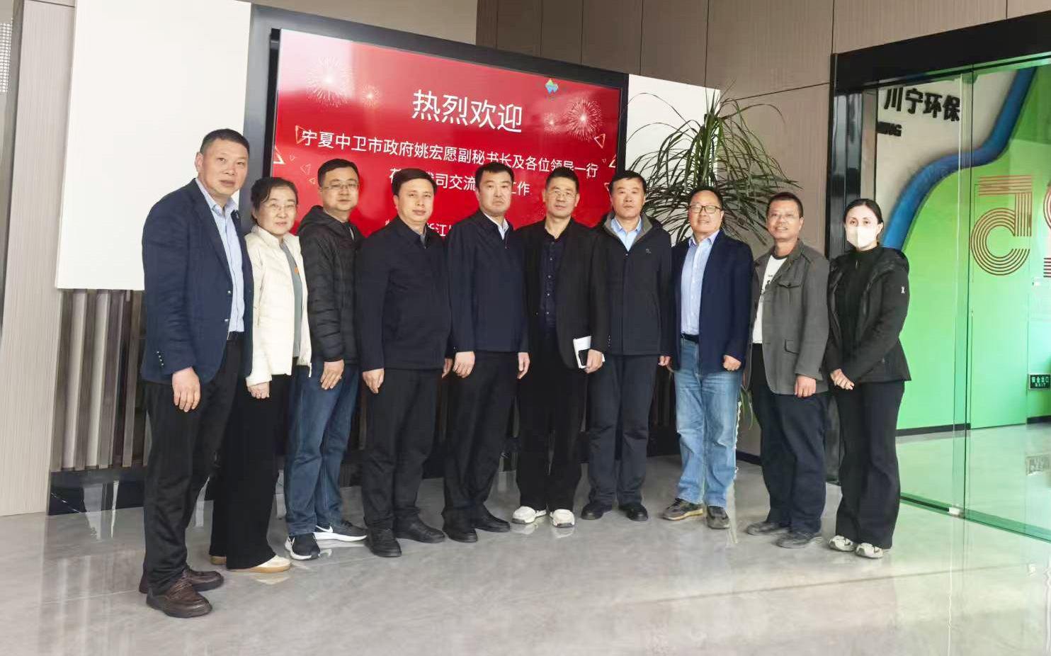 2025年12月10日,由寧夏中衛(wèi)市政府副秘書長姚宏愿帶隊(duì),工業(yè)園區(qū)黨工委委員李廣強(qiáng),市生態(tài)環(huán)境局副局長李玉明,市財(cái)政局調(diào)研員李衍萍,工業(yè)園區(qū)管委會財(cái)政金融局局長陳衛(wèi)軍,工業(yè)園區(qū)管委會綜合服務(wù)局干部馬紅霞等組成的政府考察團(tuán),專程蒞臨我司進(jìn)行考察調(diào)研。此行旨在深入了解我司在環(huán)保科技領(lǐng)域的創(chuàng)新成果與運(yùn)營模式,共商合作大計(jì),共繪發(fā)展藍(lán)圖。我司總經(jīng)理邵永富攜核心管理團(tuán)隊(duì)熱情接待,雙方舉行了座談交流會。